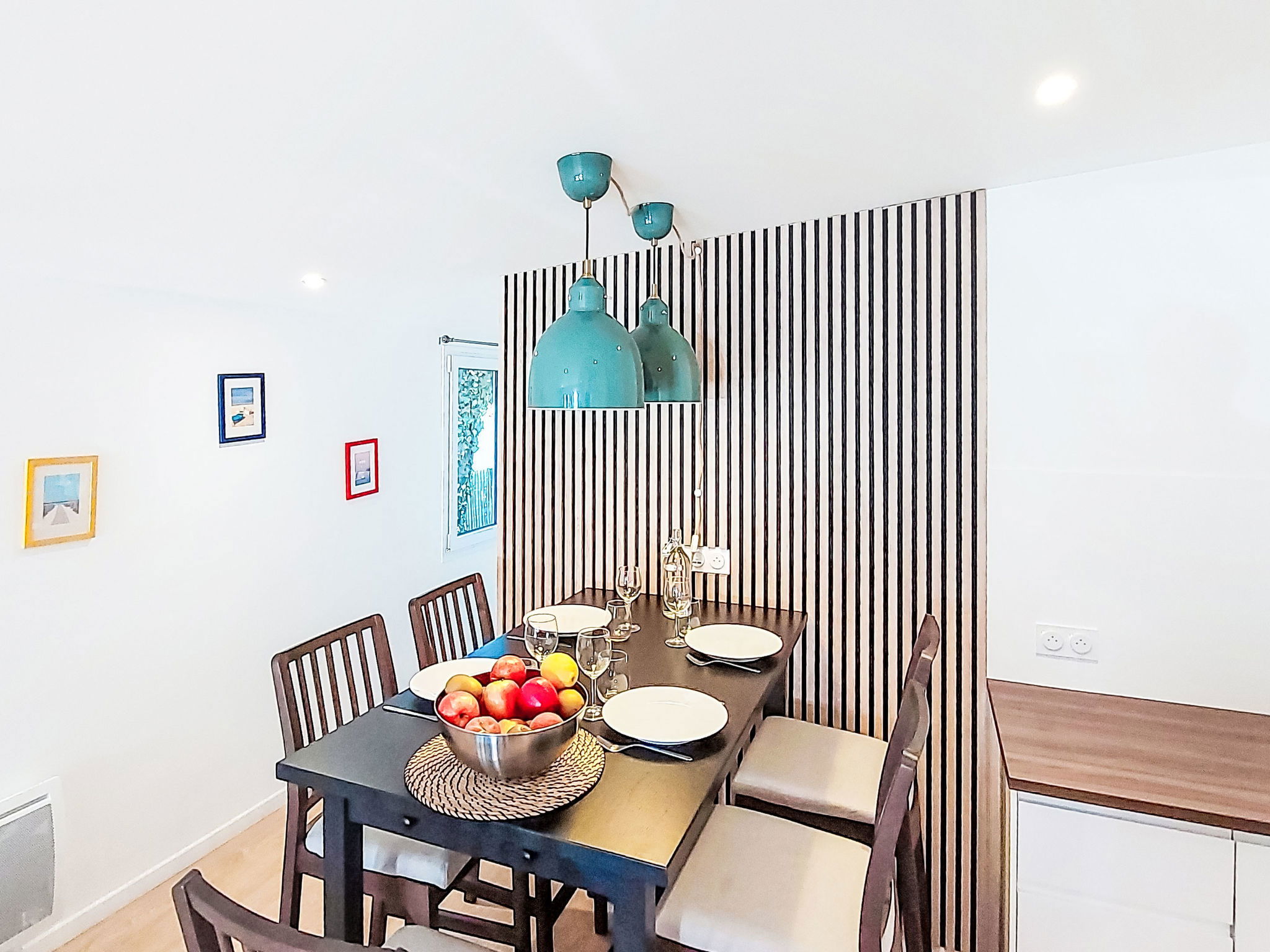 Maison 3 pièces 40 m2. Aménagement confortable et agréable: séjour/salle à manger avec TV (écran plat). Sortie sur le balcon, pergola. 1 chambre avec 1 grand-lit (1 x 140 cm, longueur 190 cm). 1 chambre avec 1 grand-lit (1 x 140 cm, longueur 190 cm). Cuisine ouverte (four, 3 plaques à induction, grille-pain, bouilloire électrique, micro-ondes, cafetière électrique). Salle de bains, WC séparé. Chauffage électrique. Petite terrasse. Meubles de terrasse, barbecue. A disposition: lave-linge, sèche-cheveux. Internet (Connexion WIFI, gratuit). Place de parking (cloturée) près de la maison. Veuillez noter: maison non-fumeur. Détecteur de fumée. Annonce d'un particulier (art 155, IV du CGI).