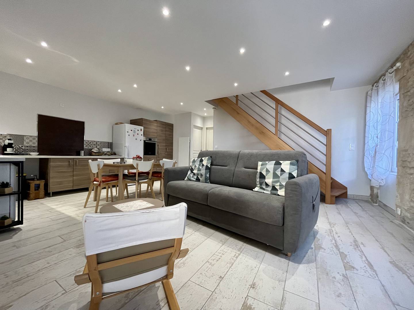 Charmante maison traditionnelle Oléronaise complètement rénovée en 2024 se composant d'un séjour, d'une grande cuisine aménagée et équipée, d'une première chambre avec un lit deux couchages (140) et rangements, d'une première salle d'eau avec lave-linge et d'un WC indépendant.