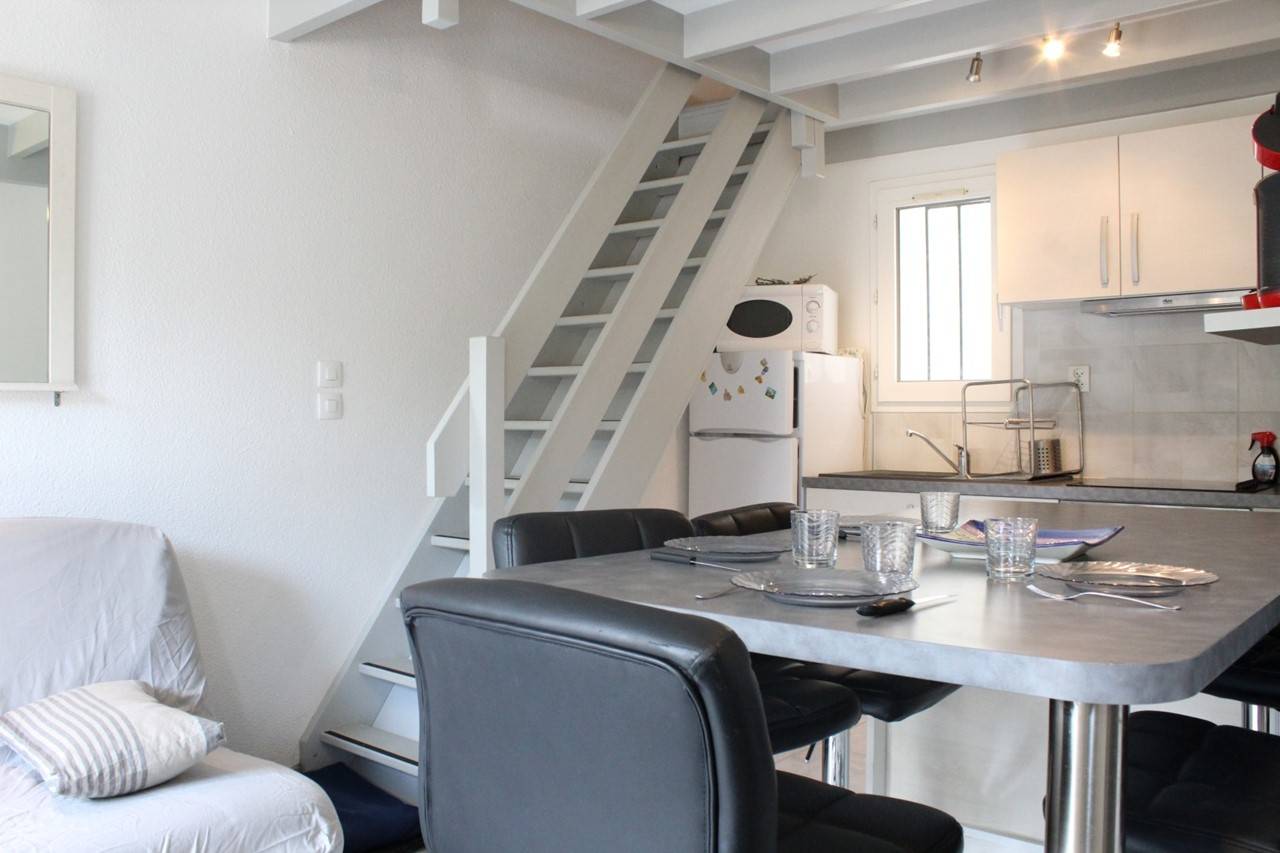 Elle se compose d'un salon/séjour, d'une cuisine équipée, d'une salle d'eau avec WC et machine à laver. A l'étage une chambre avec lit 140 et une seconde chambre avec deux lits 90. Terrasse close idéale pour les repas en extérieur avec barbecue et mobilier de jardin.