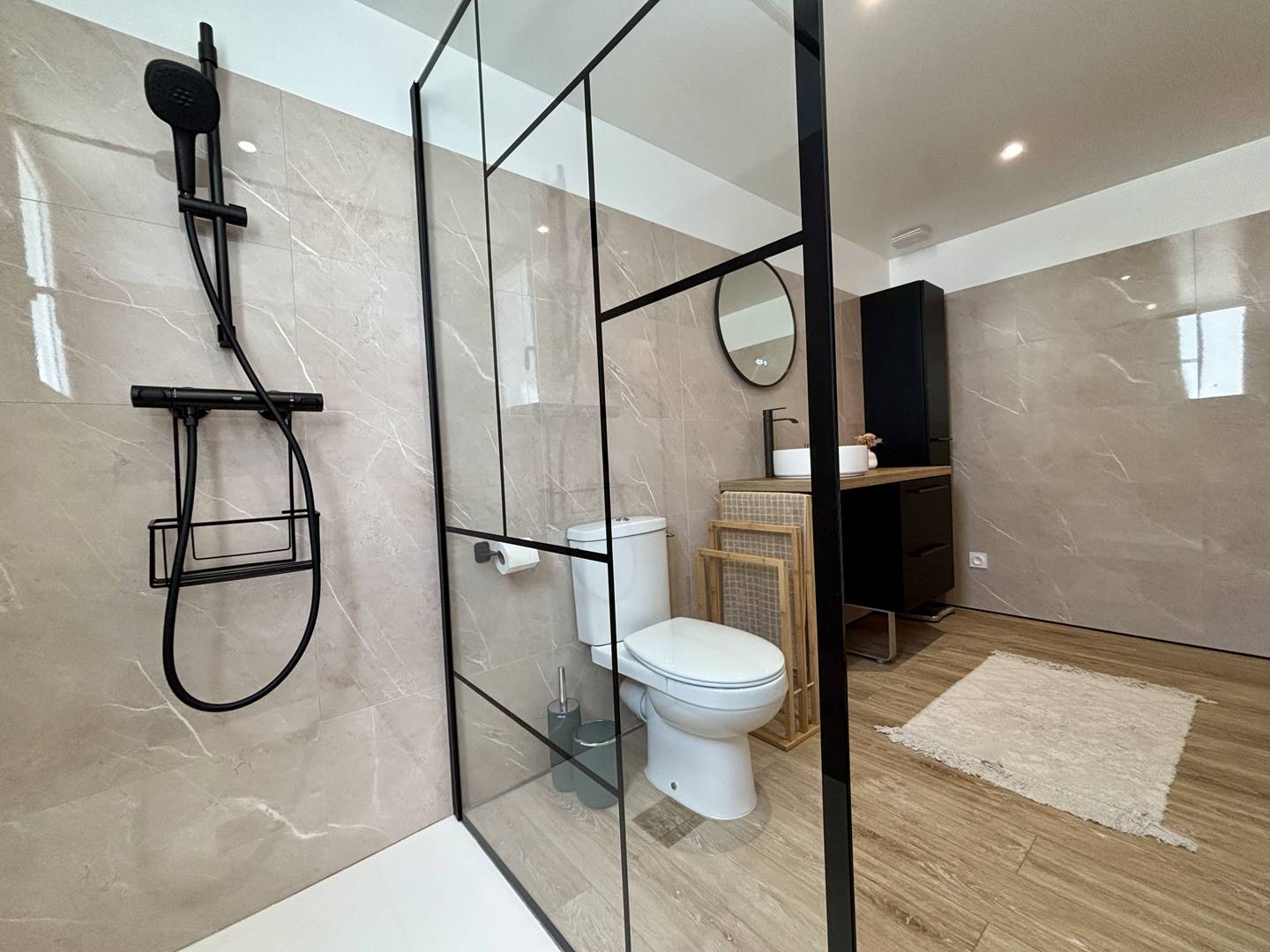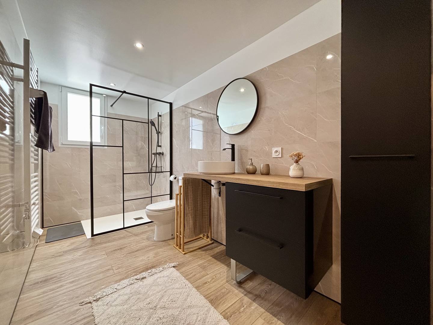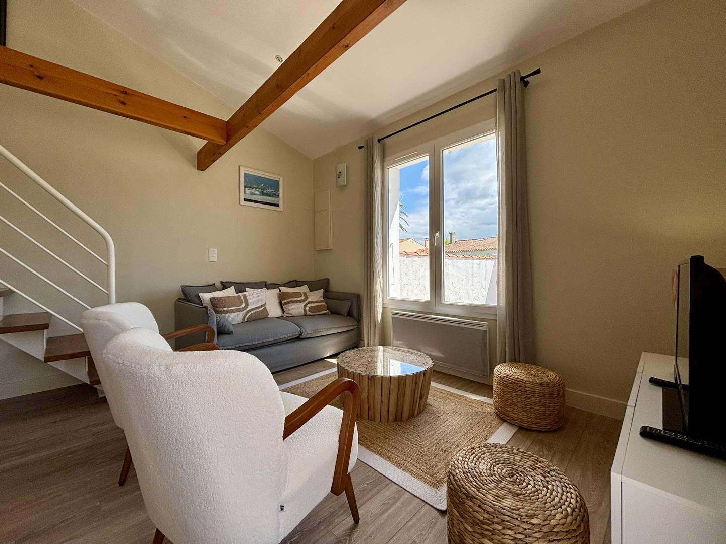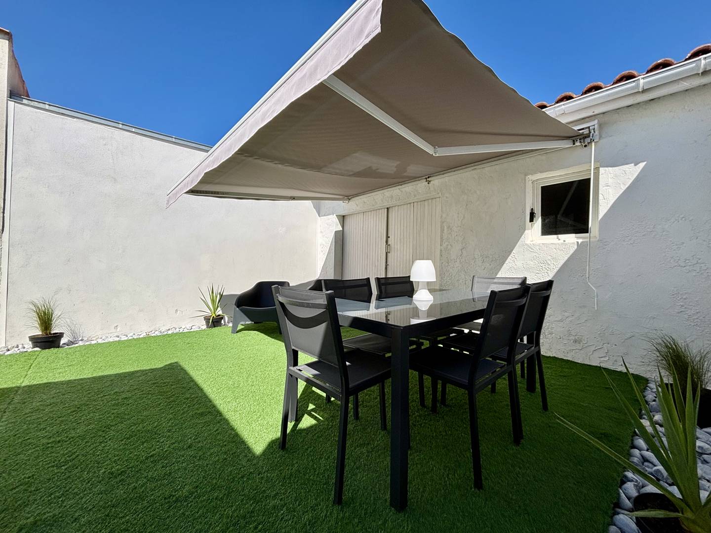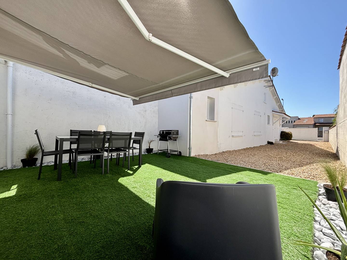 Maison 4 pièces et mezzanine - 75 m² environ - jusqu’à 6 personnes Charmante maison de vacances à deux pas du centre-ville et au bord de la plage de La Boirie. Elle se compose d'une pièce de vie avec salon/salle à manger, d'un coin cuisine aménagée et équipée avec lave-vaisselle, d'une première chambre avec un lit deux couchages (160) et dressing, d'une deuxième chambre avec un lit deux couchages (160) et dressing, d'une salle d'eau avec cabine de douche et vasque ainsi qu'un WC séparé. A l'étage, une mezzanine avec un coin détente et rangements, une troisième chambre avec deux lits un couchage (80x2 ou 160) et une salle d'eau avec cabinet de douche, vasque et WC. En extérieur, une belle terrasse aménagée avec un barbecue en dur et salon de jardin, un garage avec quatre vélos, un évier, un lave-linge et un congélateur. Parking pour plusieurs voitures sur le terrain avec portail sécurisé.