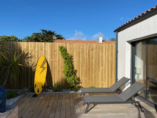Le Plus de cette location à la mer : idéale pour pratiquer les sports nautiques tel que le kitesurf, le windsurf ou le surf, à seulement 250 mètres de la plage, parking devant la villa, piscine, douche extérieure pour les retours de plage, pistes cyclables à proximité. Ménage inclus.