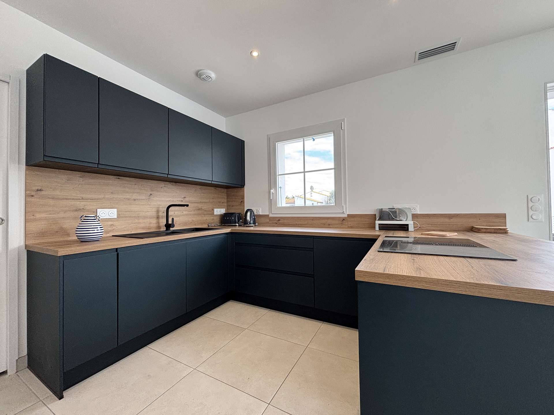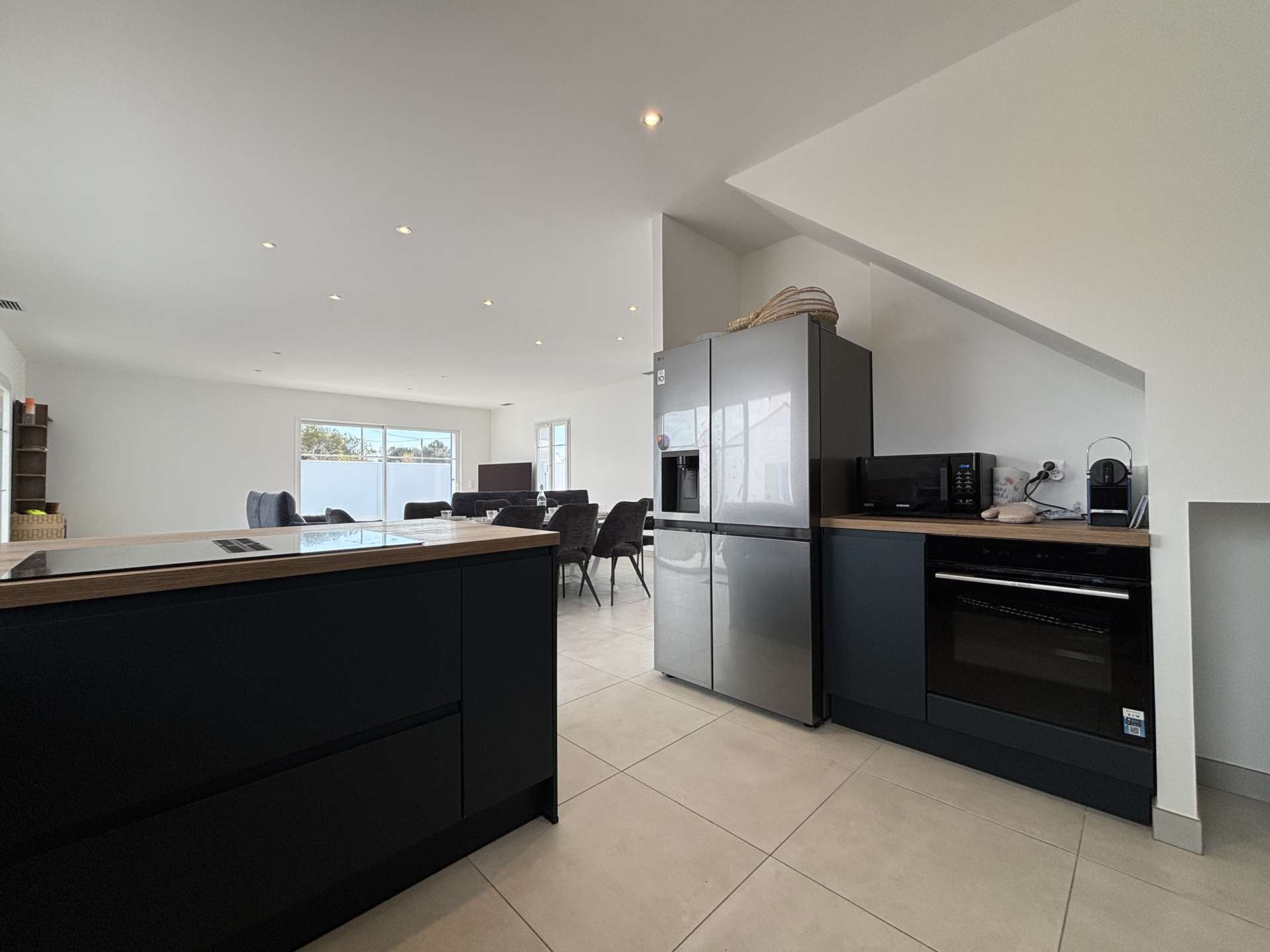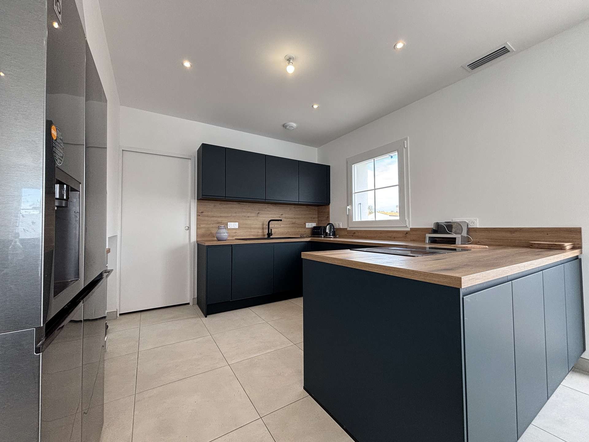 Dès l’entrée, vous serez séduits par une vaste pièce de vie baignée de lumière, ouverte sur la terrasse et pensée pour partager des moments conviviaux autour d’une cuisine entièrement équipée : réfrigérateur américain, plaque avec hotte intégrée, lave-vaisselle, micro-ondes, bouilloire, grille-pain.