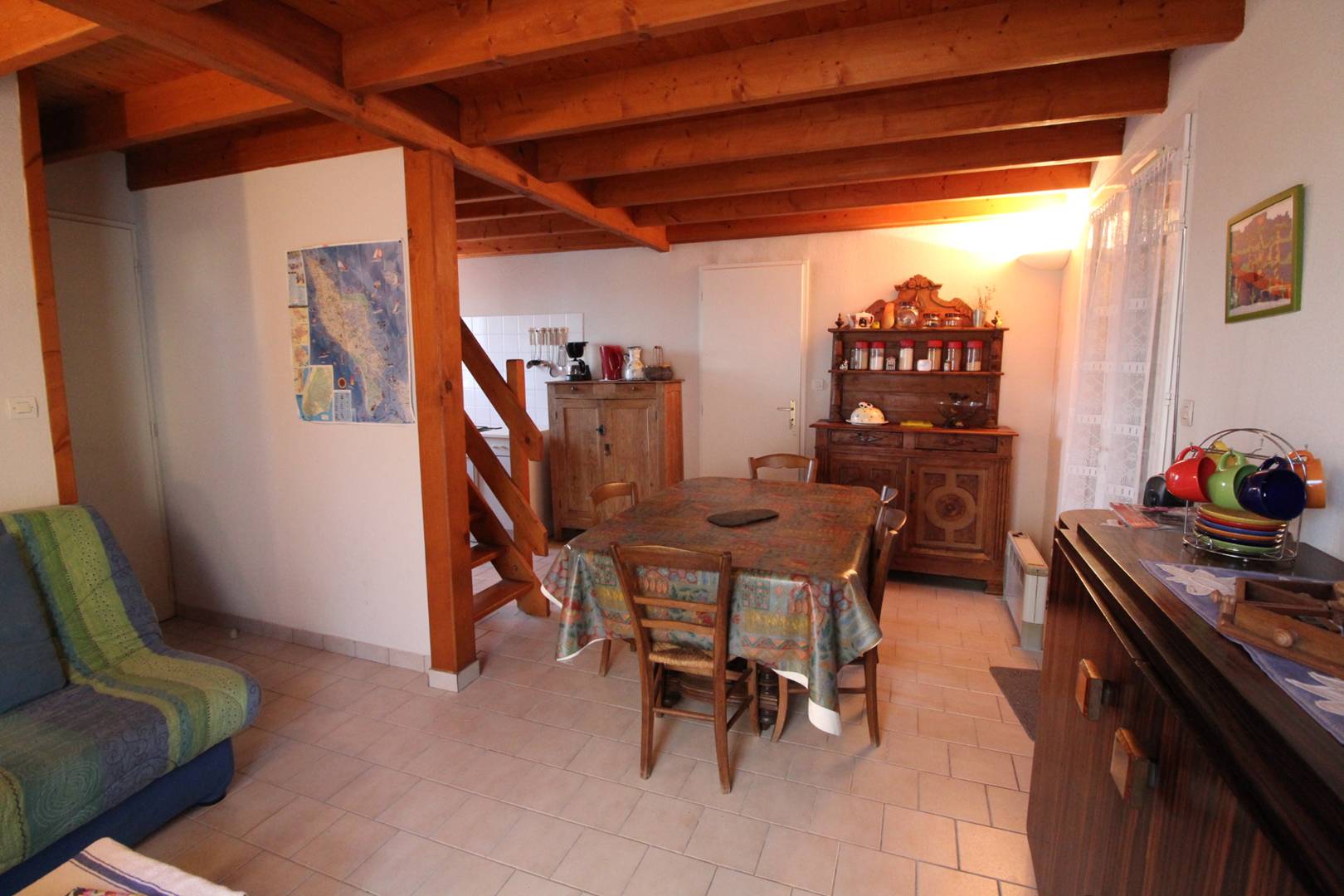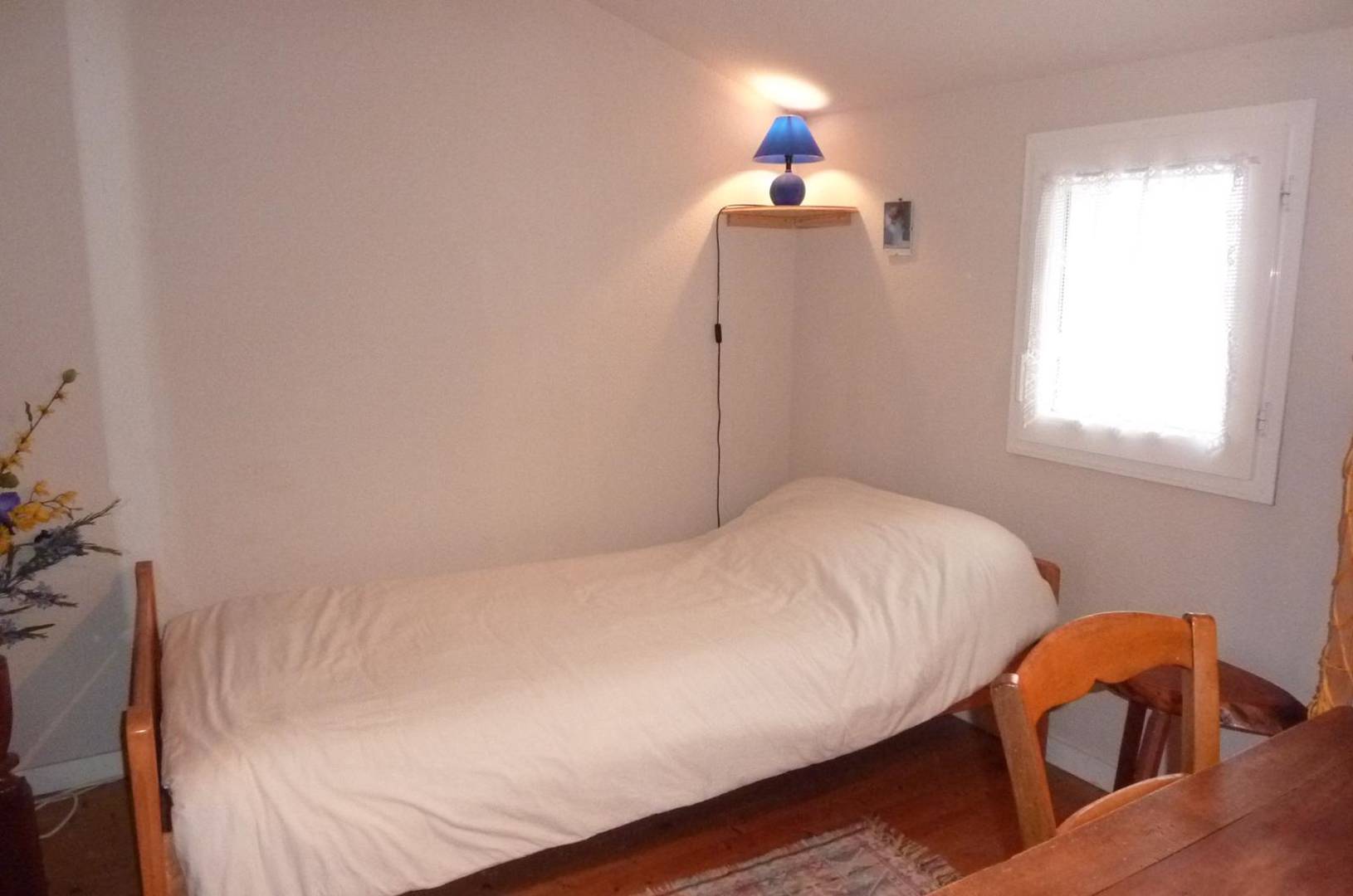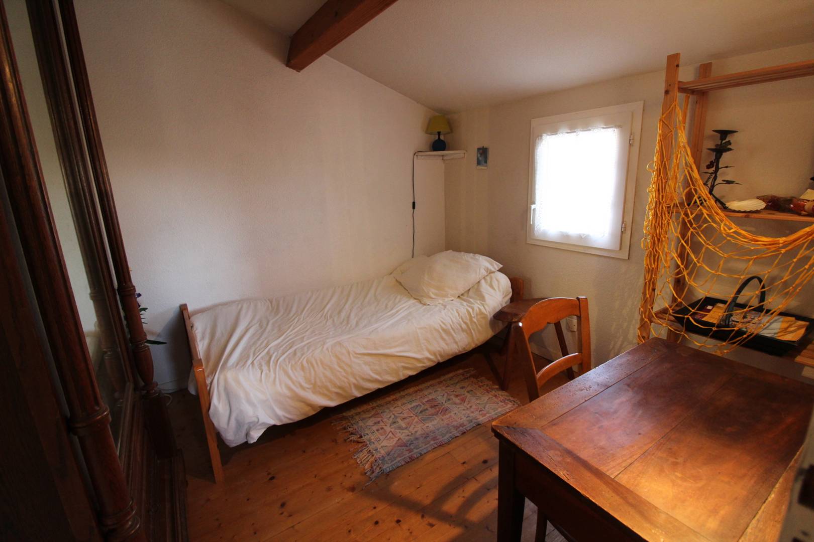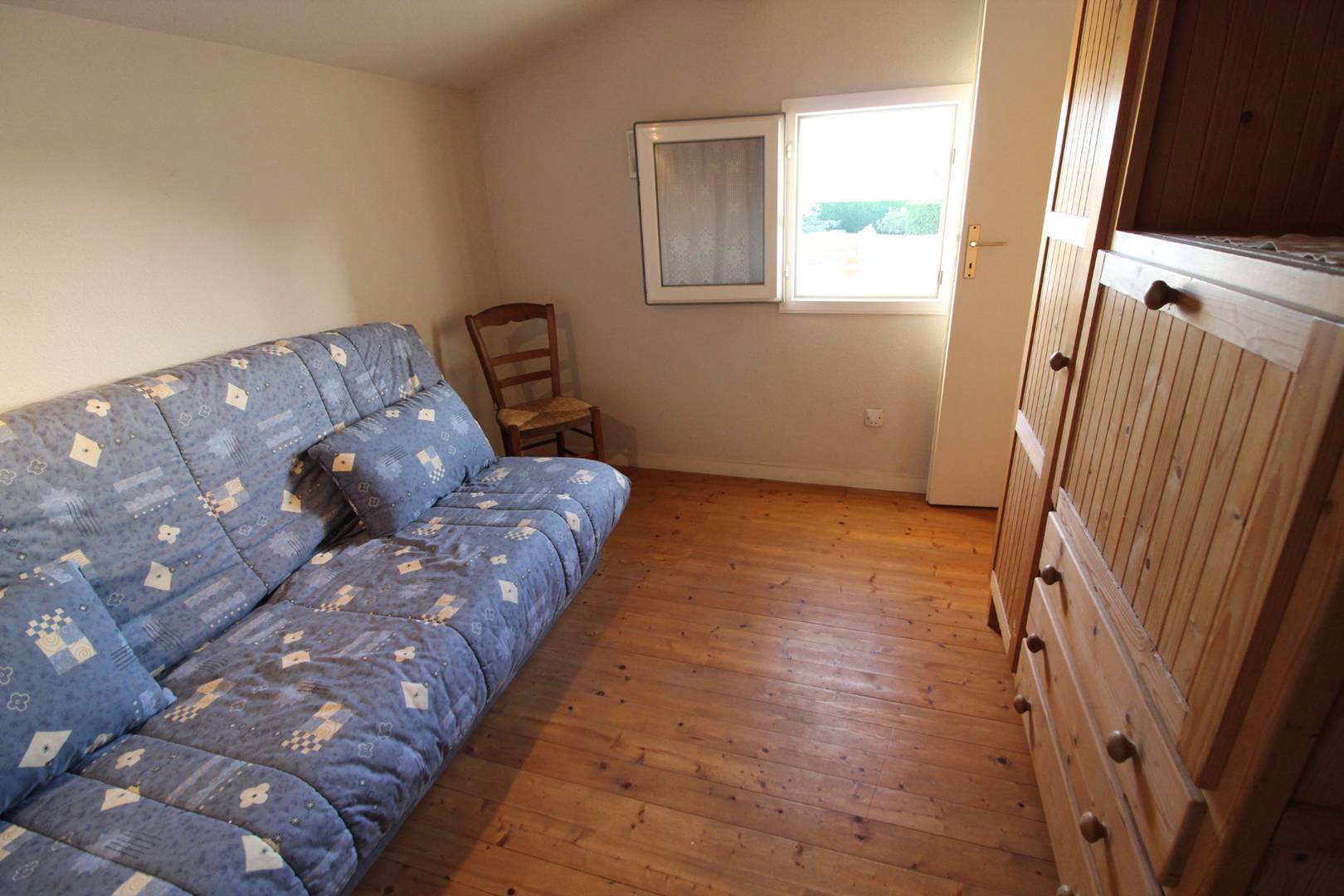 A l'étage, cabine avec canapé lit 2 personnes, en enfilade une chambre avec un lit deux places (140) et une troisième chambre avec un lit deux places (140).