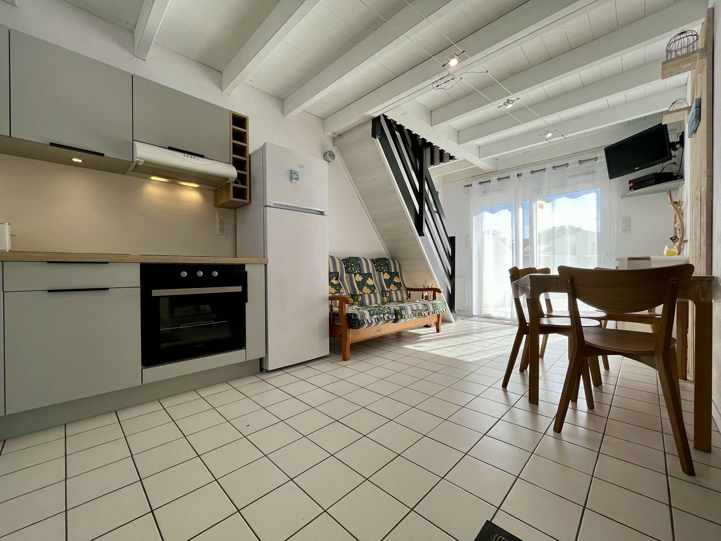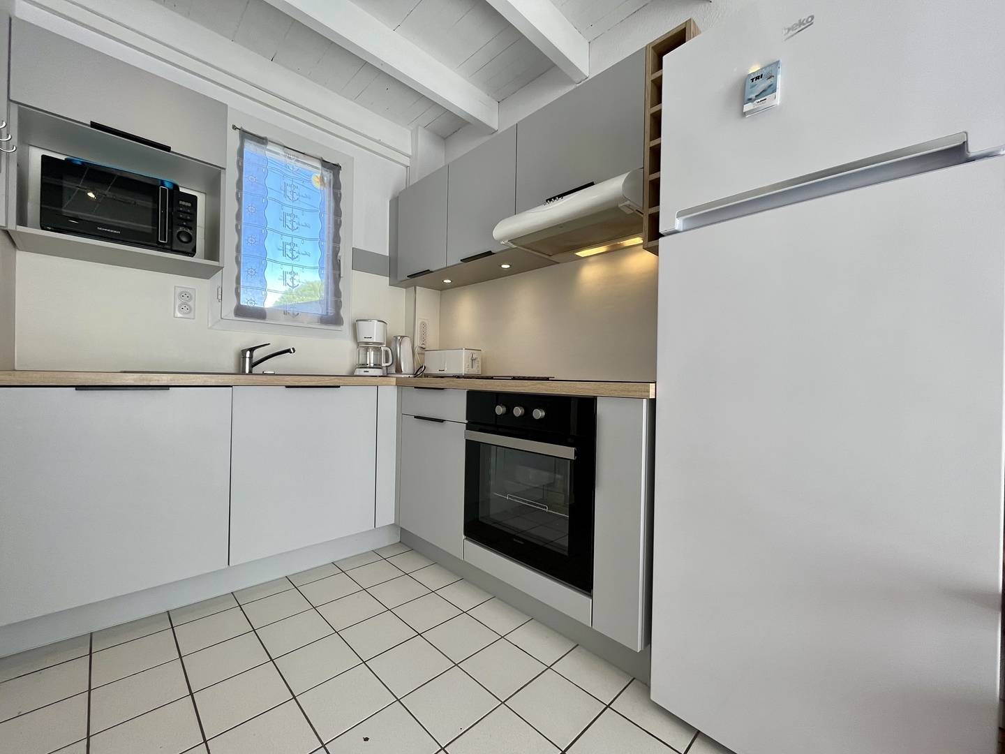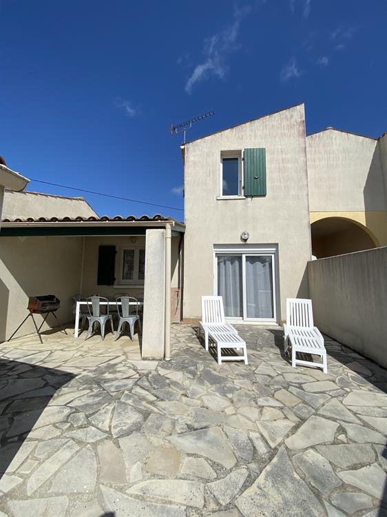 Jolie petite maison rénovée dans une résidence à deux pas de la plage de la Menounière se composant d’une pièce de vie lumineuse avec cuisine ouverte sur le séjour entièrement équipée et aménagée (réfrigérateur et sa partie congélateur, lave-vaisselle, micro-ondes, four électrique, plaque induction), d’une chambre avec deux couchages (140), d’une salle d’eau avec douche à l’italienne, WC indépendant, d’un cellier avec lave-linge. A l’étage, une seconde chambre avec deux couchages (140), d’un second WC indépendant, et d’une troisième chambre deux couchages superposés (90). En extérieur, petite cour fermée avec une partie couverte, mobilier de jardin. Stationnement dans la rue, devant la maison.